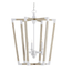 The Bastian Medium Sandstone Lantern is made of wrought iron and wood in sugar white and sandstone finishes. The crisp feel of the white metal clasping the spokes of washed wood brings extra sophistication to this lantern-shaped chandelier.