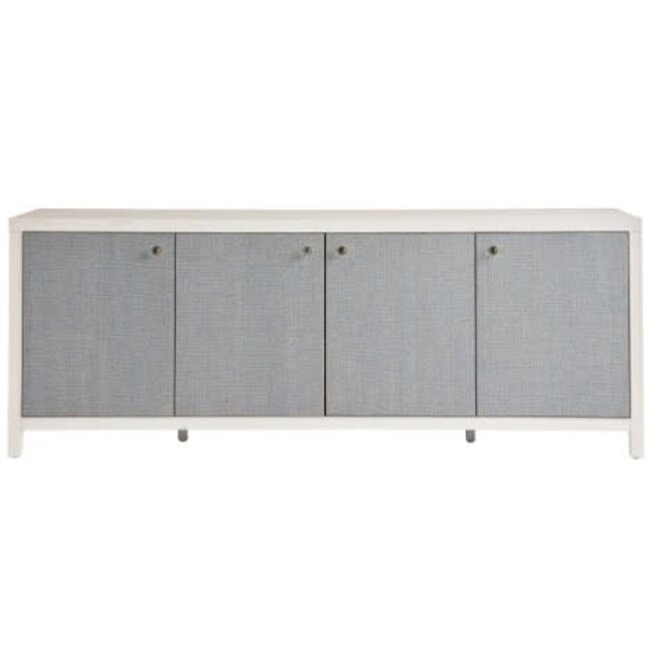 Six adjustable wood shelves, power supply strip, and wire access through partitions back panel. White Sand finish and Blue Seagrass doors. Read more.