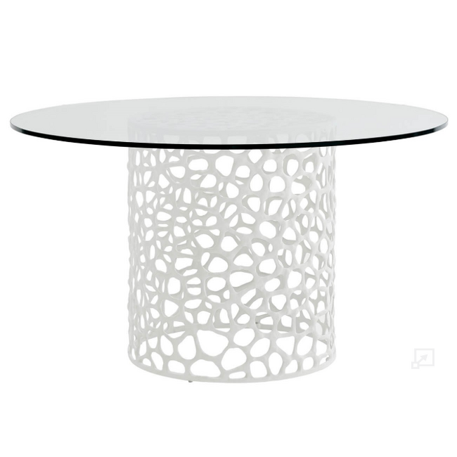 Cast Aluminum Base, White Finish and Tempered Glass Top. Read more.