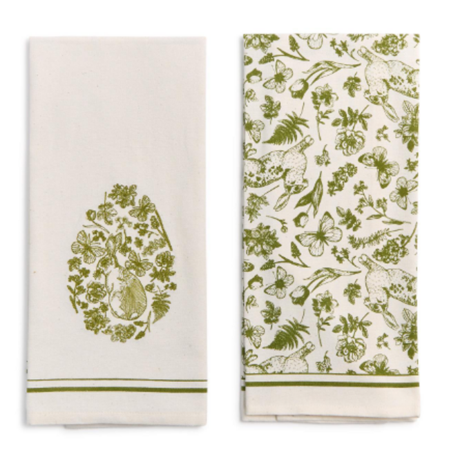 Bring a touch of elegance to your kitchen with this set of two cotton dish towels, each showcasing a distinct French Country-inspired design. One with a delicate embroidery, and other a printed motif-perfect for both practical use and decorative display.