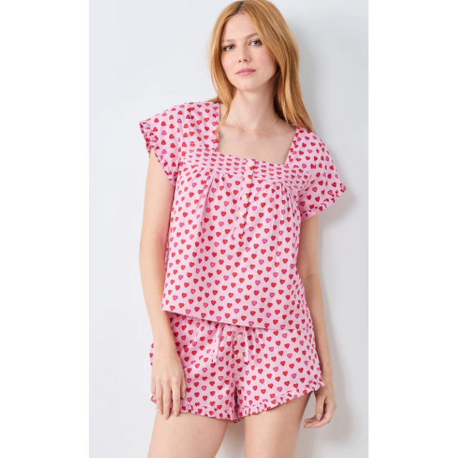 Romance meets comfort in these cotton heart pajamas. Featuring an understated heart print on soft organic cotton poplin, this pintuck pajama set offers romantic detailing and a relaxed silhouette.