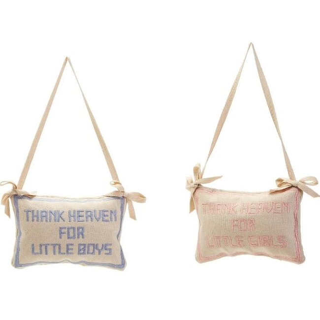 Hang these adorable pillows in your baby's room. Made of 100% cotton and a velvet backing with beautiful embroider details. Makes for a great baby shower gift! Read more.