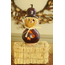 Warehime is our mahogany and natural colored scarecrow. He has three hand crafted leaves and an adorable scarecrow face. His hat is made of a gourd. He has raffia hair and raffia adorns his neck. He is a unique scarecrow that you can leave out all fall season. Approximately 3 1/2" in diameter and 7" tall. Comes with a removable cork. He can be lit by purchasing a battery-operated tea light. He is a great size to add to your fall decor.