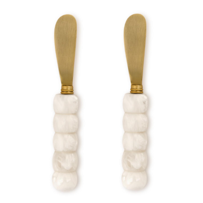 The White Beaded Spreaders brings style and function. Crafted from stainless steel with resin bead handles, each piece is designed for spreading and serving with ease. Ideal for charcuterie boards, parties, and hostess gifts. Read more.